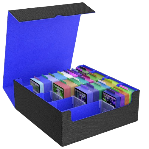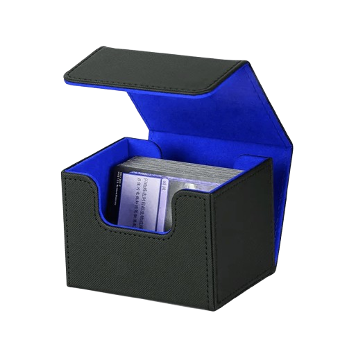 Our Card Deck Box is the perfect storage solution for all of your collectible cards. Crafted with a faux leather exterior and secured with a magnetic closure, this box can hold up to 100 cards. Keep your collection organized and safe with our Card Deck Box.